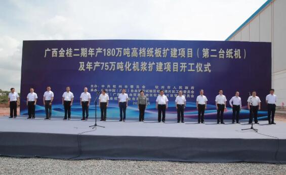 2022年5月30日上午,金光集團APP(中國)旗下廣西金桂漿紙業有限公司(以下簡稱金桂漿紙)二期工程年產180萬噸高檔紙板項目的第二臺紙機和